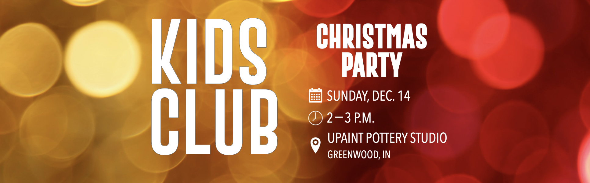 All kids in kindergarten through fifth grade and their families are invited to join Kids Club for a Christmas party at UPaint Pottery Studio in Greenwood on Sunday, Dec. 14 at 2 p.m.! We will paint Christmas ornaments and share some holiday treats. Please RSVP so we can plan accordingly.